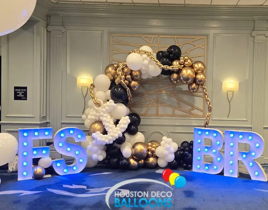 At Houston Deco Balloons, we specialize in providing corporate event balloon decorations in Houston that make a lasting impression. Whether you’re hosting a product launch, ribbon cutting, or annual gala, our balloon decor rentals for corporate events bring a touch of elegance and excitement to any setting. From stunning balloon arches to customized marquee letters and professional Houston event backdrop rentals, we offer everything you need to create a memorable and visually stunning atmosphere. Trust us to transform your corporate event with our expertly designed decor solutions tailored to your brand and vision.