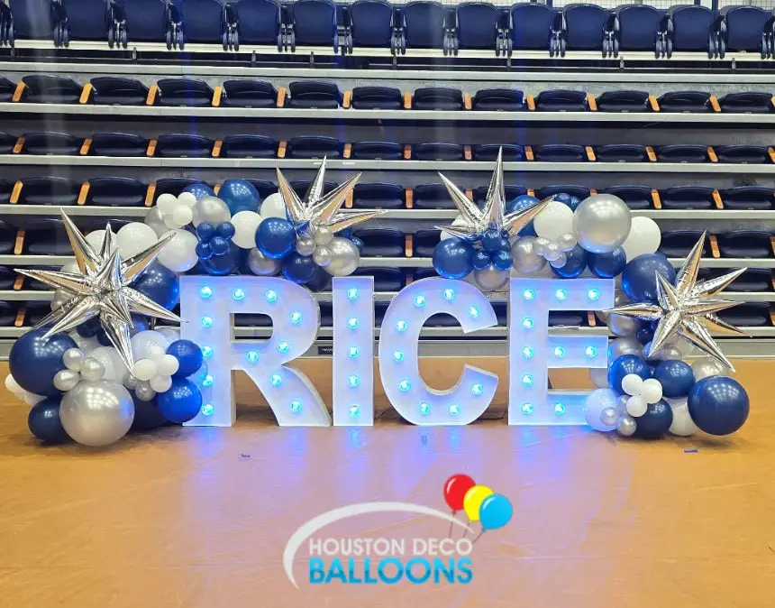 Discover stunning event decorations at Rice University with vibrant balloons and illuminated marquee letters. Learn how these creative elements add style and energy to university events, transforming spaces and creating memorable experiences. Find out how to incorporate balloons and marquee letters into your next Rice University event